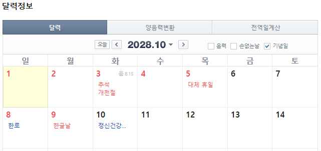 4. 또 비슷한 2028년 추석