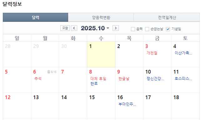 3. 상황이 비슷한 2025년 추석