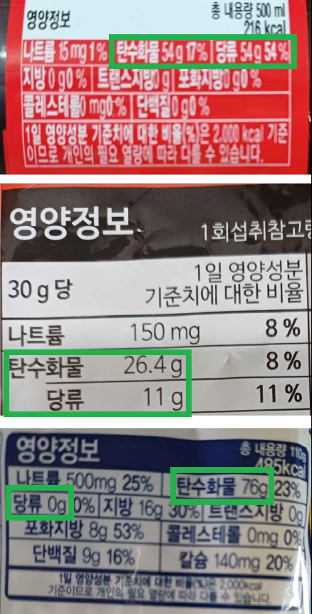 그렇다면 영양성분표의 예시 사진들을 보며 분석해 보겠다.